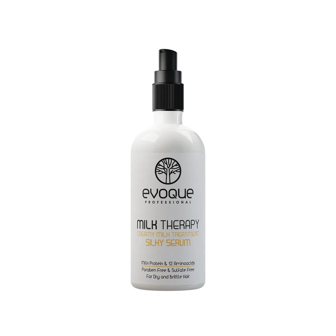 Evoque Milk Thearpy Silky Serum stvara vodonepropusnu barijeru na površini kose sa sustavom za blokiranje vode kako bi uhvatio vlagu u kosi. Smanjuje protok pigmenta dlake kroz vlas uz značajno sprječavanje ulaska vode u korteks vlasi. Povećava elastičnost kose i povećava njenu otpornost na vanjske čimbenike. Čini da vaša kosa izgleda živopisno, svijetlo i puno.